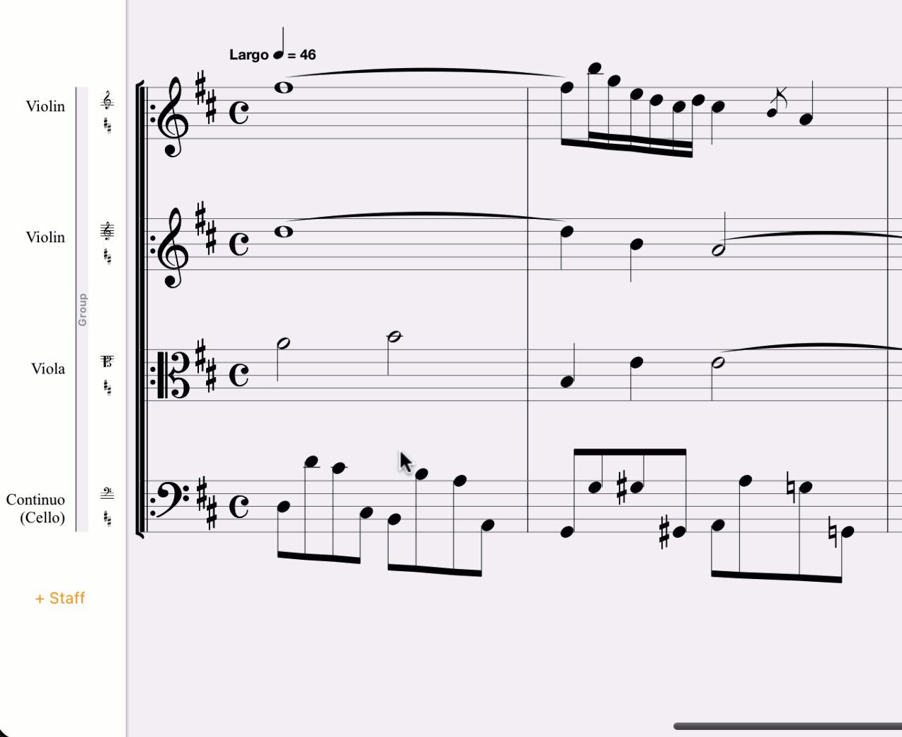 To make more room for edits, drag a bar line in the measure bar to expand note spacing or drag a barline in the score to add more space at the end of the measure. Long press in the measure bar to reset the spacing.